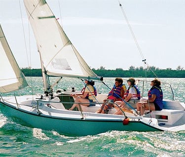 The Colgate 26' sailboat is a fast, high-performance keelboat, with well-thought-out safety and ergonomic features that make it fun to sail. The Colgate 26' is a comfortable boat that sails well in a fresh breeze with one reef in the mainsail.